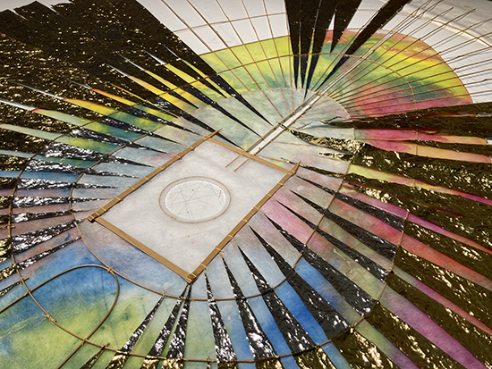 2020, 185 x 160 cm, bamboo, rescue foil, filter, ink