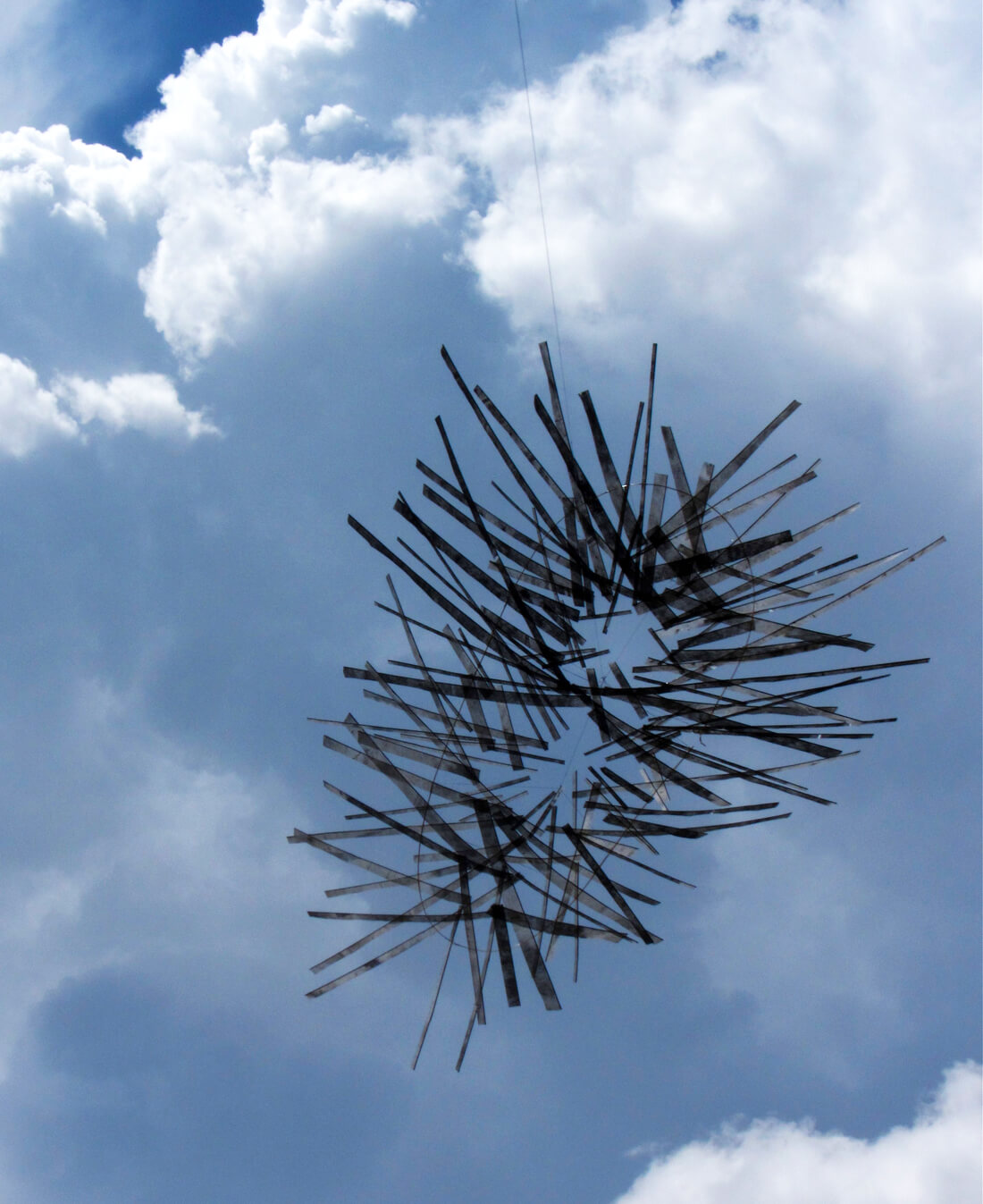 2018, 210 x 140 cm, bamboo, filter, ink, gold foil